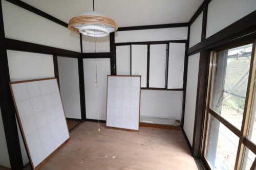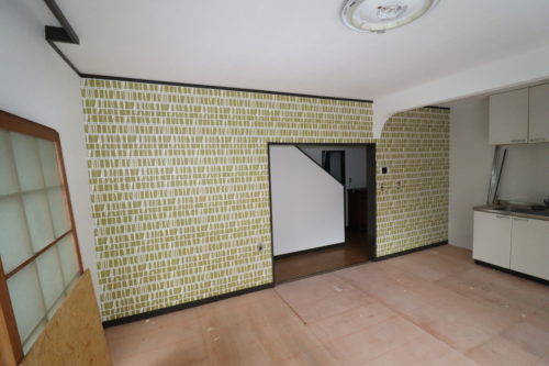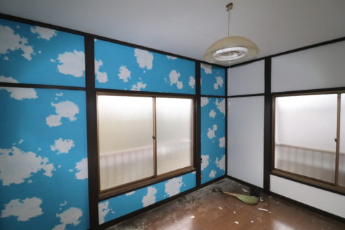 桃園の内壁も仕上がってきました。今回は、ファミリー向けの物件ということで、楽しい家になるように考えてみました。もともとウッドデッキがあったのですが、朽ち果ててしまっていました。当初は、再度作り直す予定はなかったのですが、庭にある桜を見ながらウッドデッキでバーベキューなど出来たらいいなと、作り直すことにしました。子供のいるご家族に借りていただけると良いなと思い、壁紙も子供が喜ぶようなものを選びました。